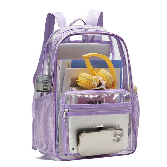 Clear Backpack Durable PVC Clear Backpack, Heavy Duty Transparent School Bag with Reinforced Straps and Large Capacity for College Workplace Safety - Black