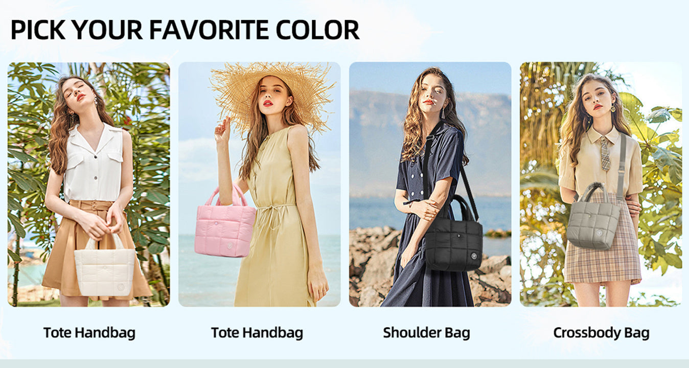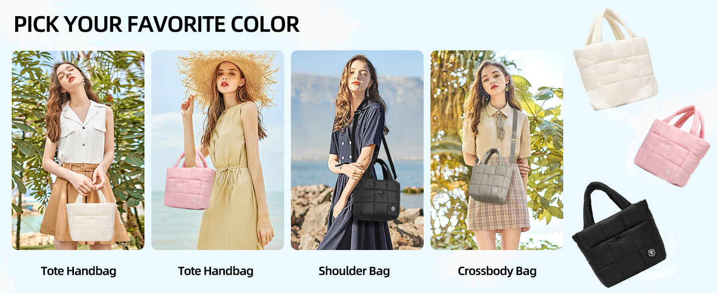 Tote Bag for Women, Lightweight Puffy Tote Bag with Compartments Quilted Shoulder Bag Handbag for Travel, Work, Gym