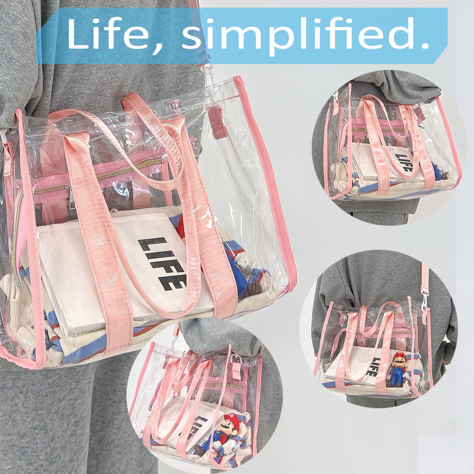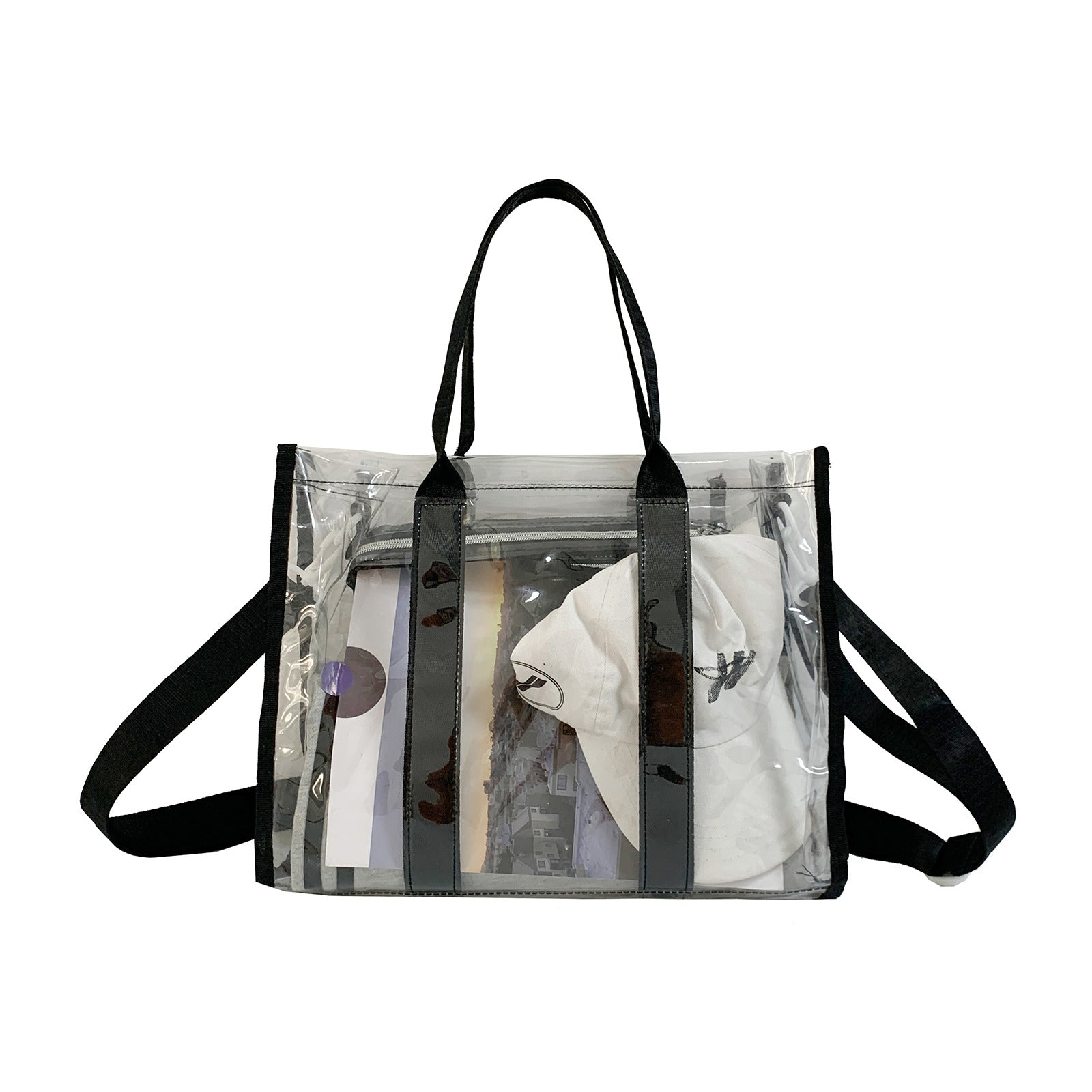 • MULTIFUNCTIONAL - The women's clear tote bag features high-quality waterproof zippers for added durability and beauty, a 1.25(W)*50(L) inch removable and adjustable long strap. It can use be shoulder bag and crossbody bag