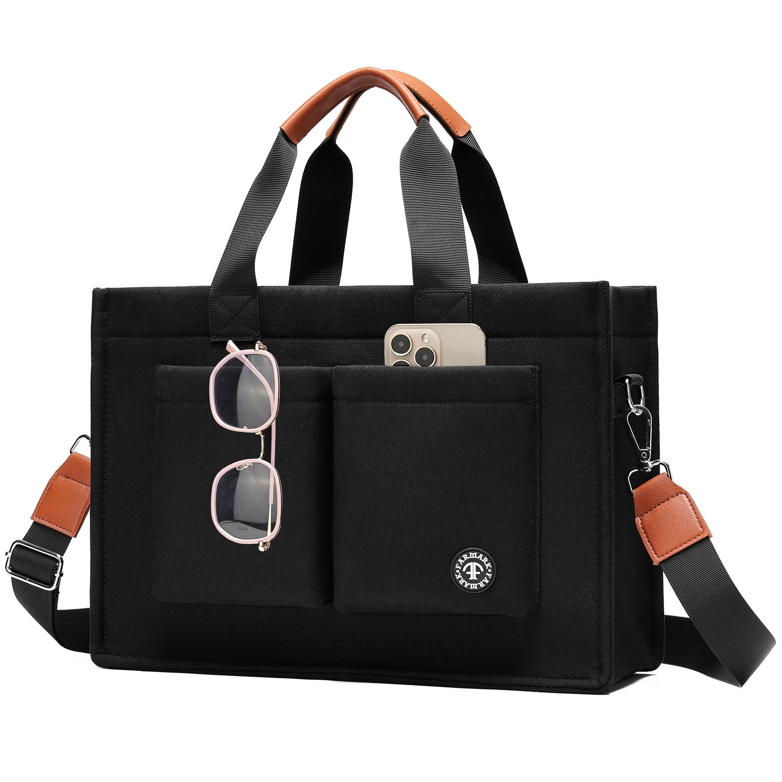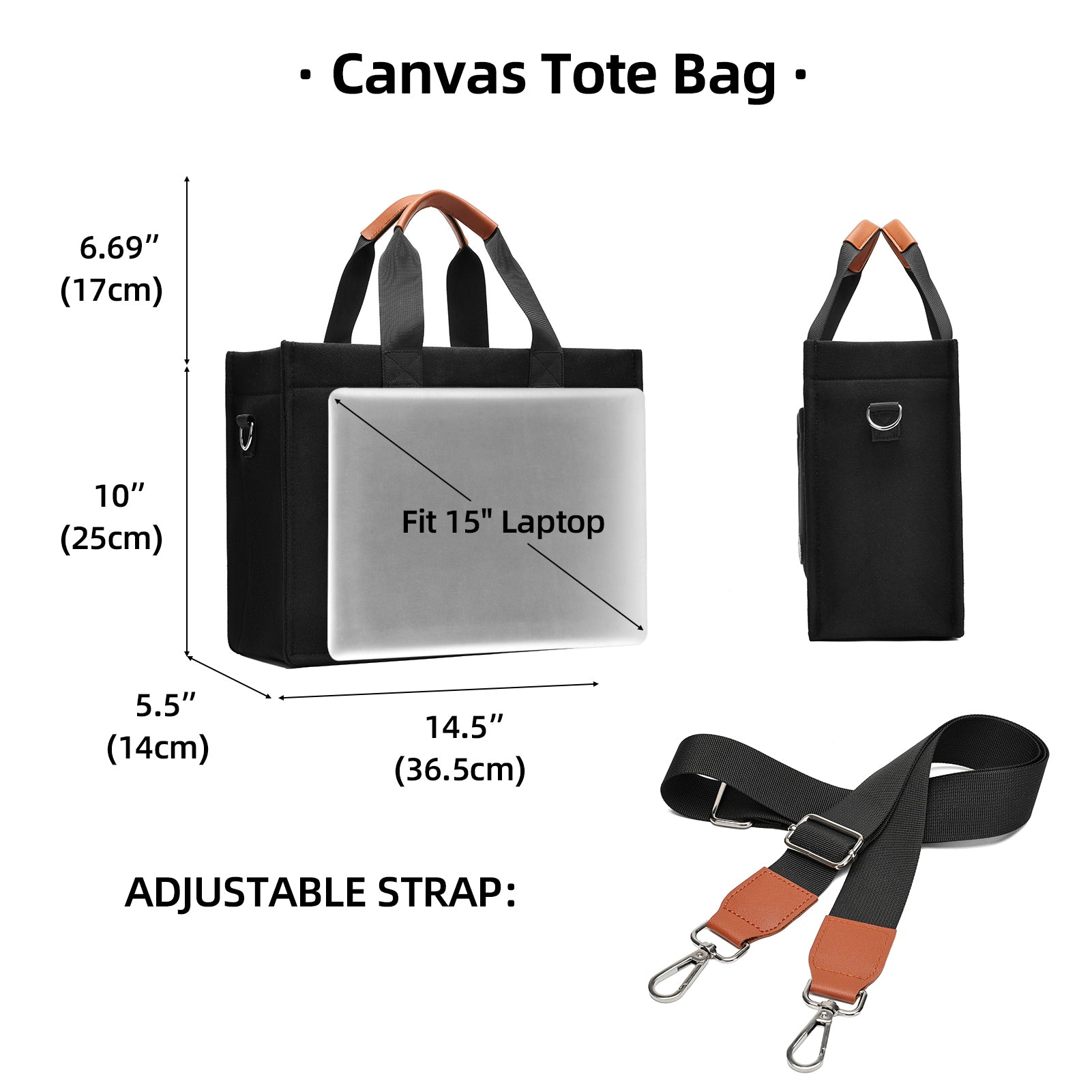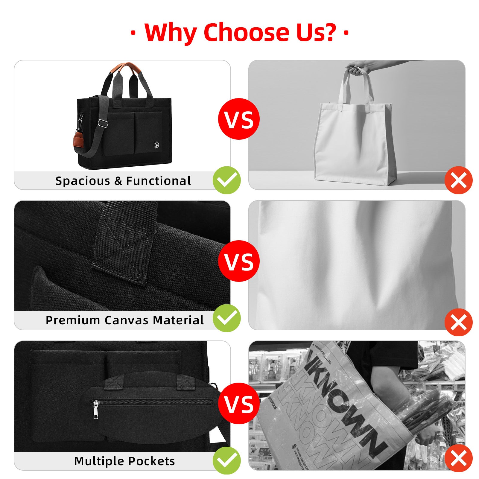 Women's Tote Bag with Compartments - Large Canvas Laptop Book Bag, Women's Money Bag with Pockets for Work and Travel