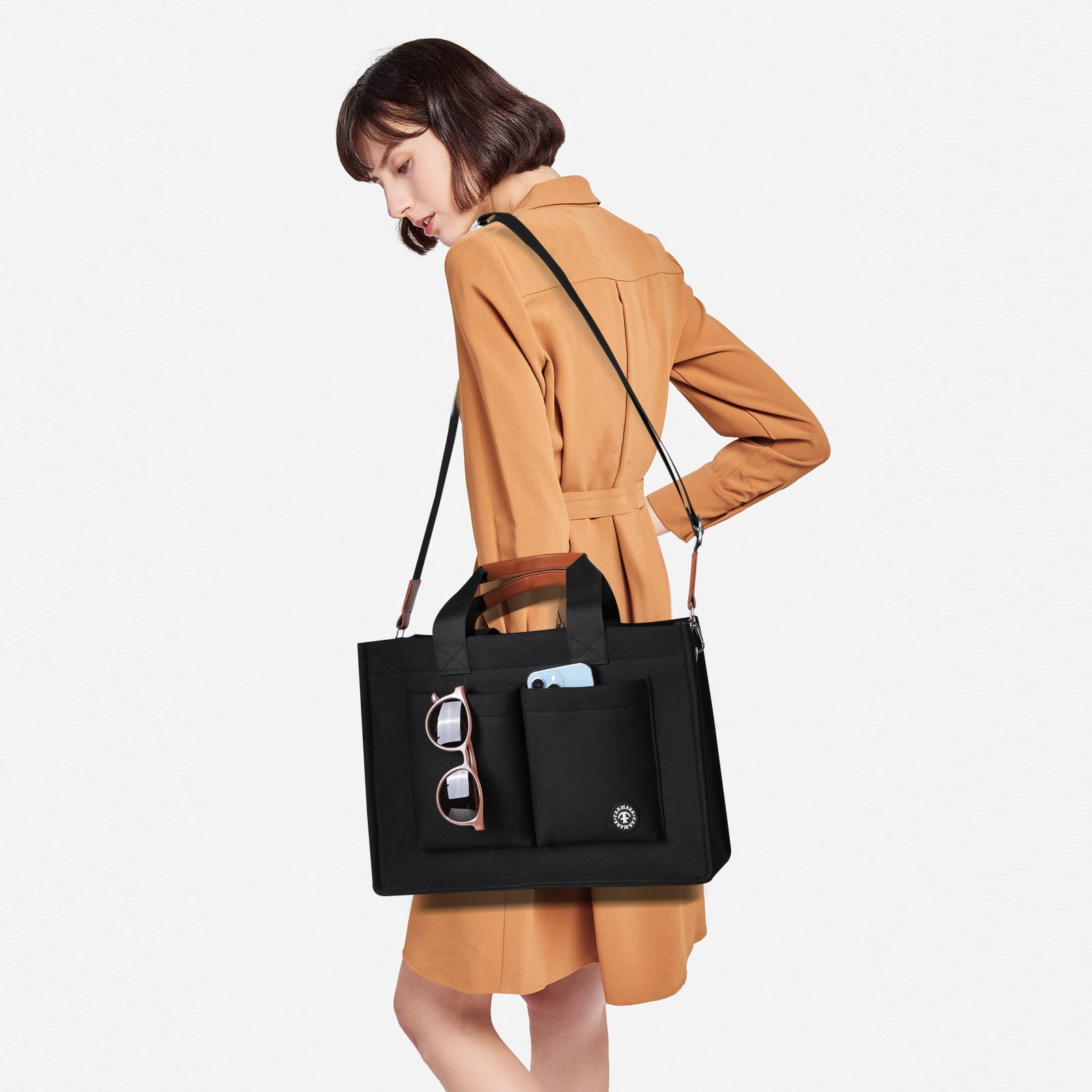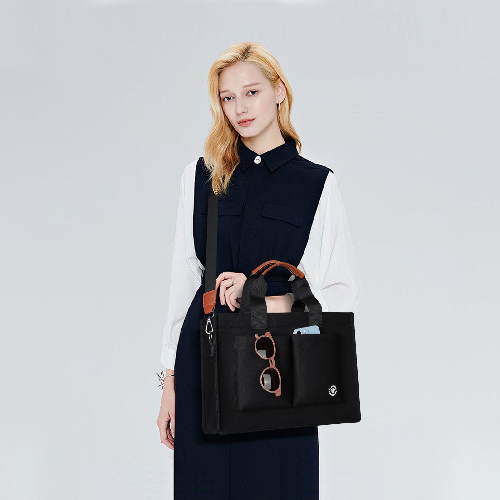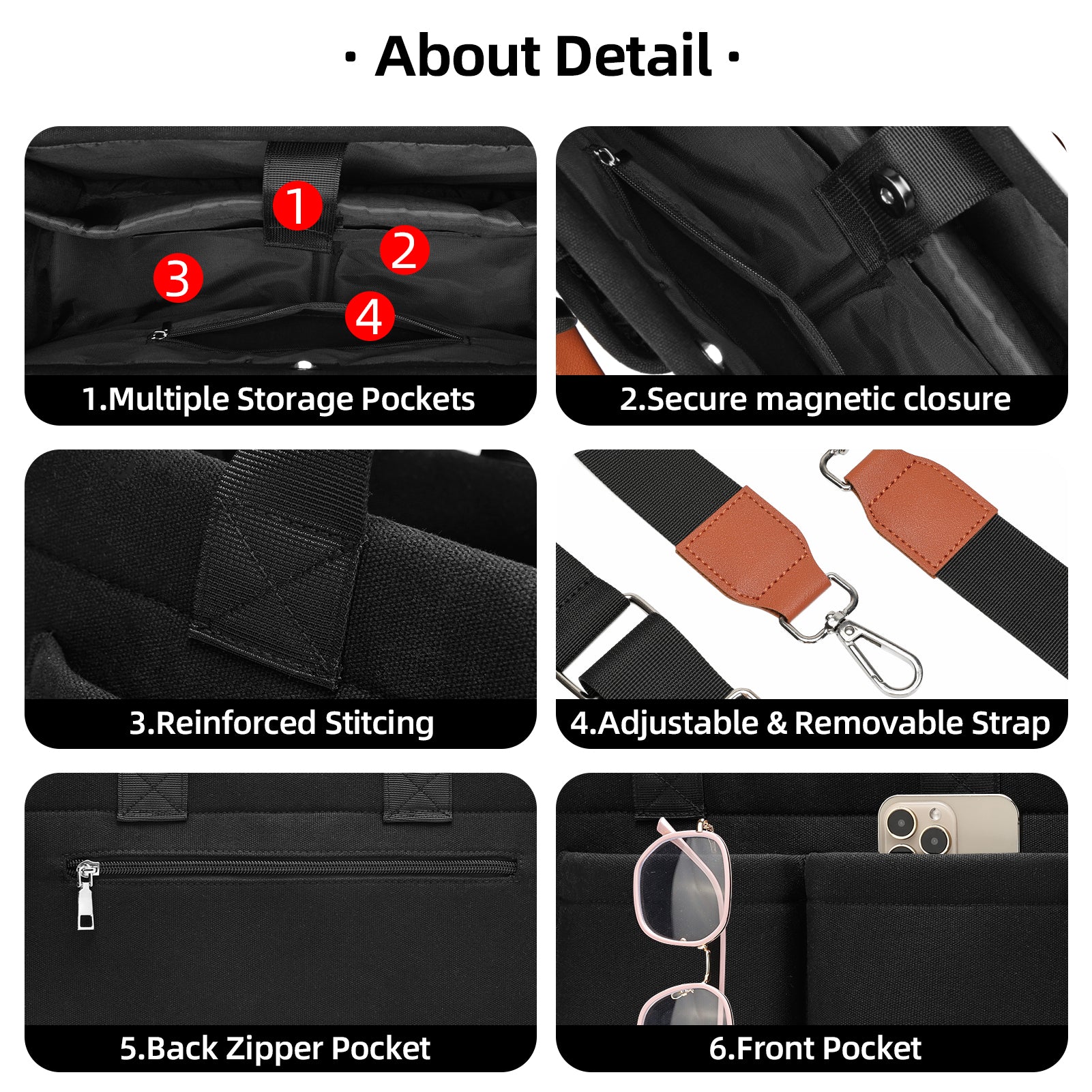 Women's Tote Bag with Compartments - Large Canvas Laptop Book Bag, Women's Money Bag with Pockets for Work and Travel