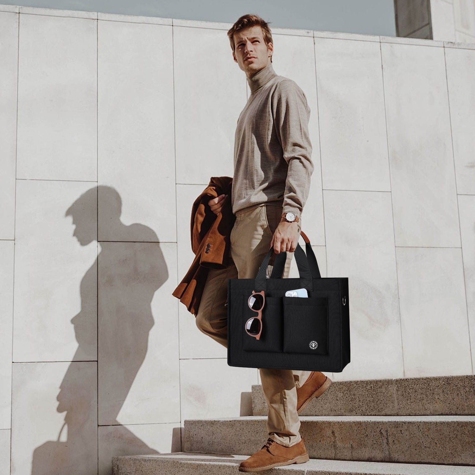 - 💼 Large Capacity & Smart Organization – Features multiple pockets, including two front pockets for quick access, a large back pocket for an iPad, and a spacious main compartment for books, documents, and laptops